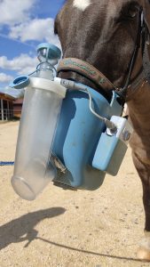 So verhält es sich auch bei etlichen unserer älteren Pferde. Sie leiden unter chronischen Atemwegserkrankungen (z. B. Asthma) und brauchen eine entsprechend aufwendige Pflege in Form einer konstanten Inhalationstherapie. Diese kann aus einer reinen Kochsalzlösung bestehen, welche über die Atmung direkt auf die Lungenoberfläche gelangt. Ebenso ist die Inhalation spezifischer Medikamente sehr hilfreich und bringt den Patienten enorme Linderung ihrer Beschwerden.