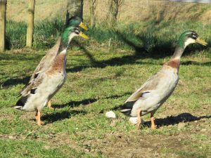 Die vier Laufenten Donald, Tick, Trick und Track haben Ende Oktober bei uns Einzug gehalten. Gerade mal einjährig sollten sie bereits auf der weihnächtlichen Festtafel landen, konnten glücklicherweise aber kurz vor der Schlachtung gerettet werden.
